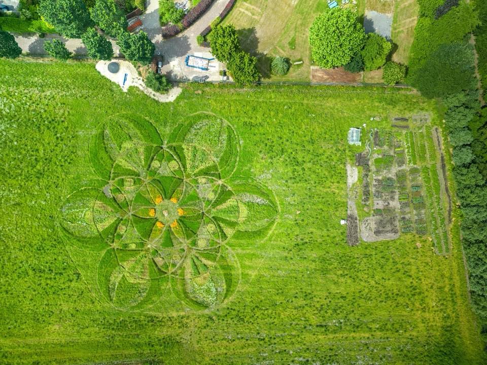 There was no doubt in my mind exactly where the tree was supposed to go. It was to get a very central place: exactly in the middle of where there was a magical Flower of Life symbol made entirely of flowers. This symbol was created by Mariƫlle Leenders a few years ago: