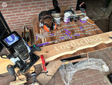 I also made a nice sign with our handheld CNC (Shaper Origins):